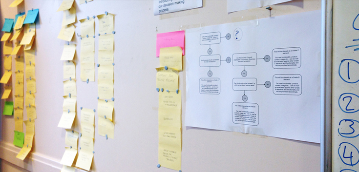We met regularly, making sure that everyone was clear on how the designs were evolving. I also worked within a small scrum team, each sprint was short no more than a few weeks, this kept each iteration small making the decision process simple and fast.